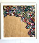 This work is built with the scraps of yarn left over at the ends of projects, saved and gifted to me.